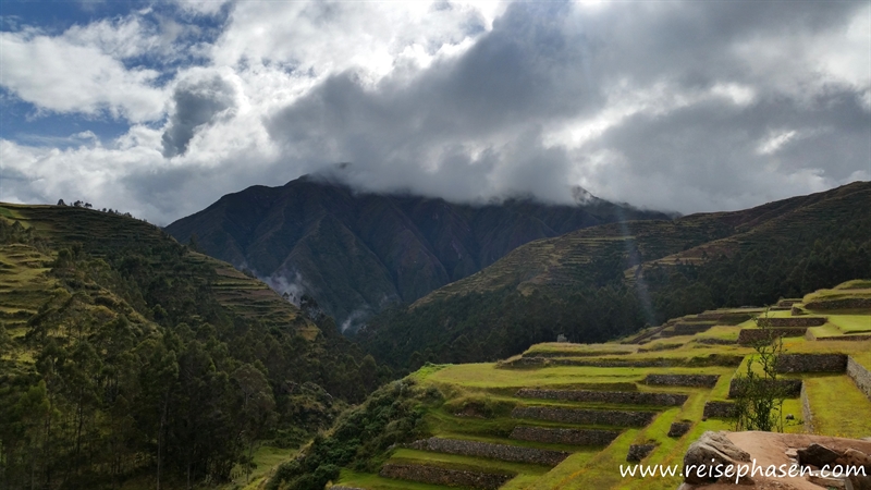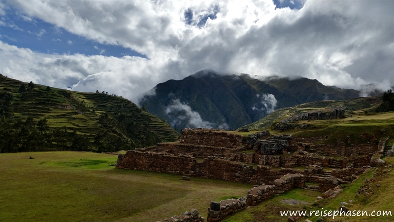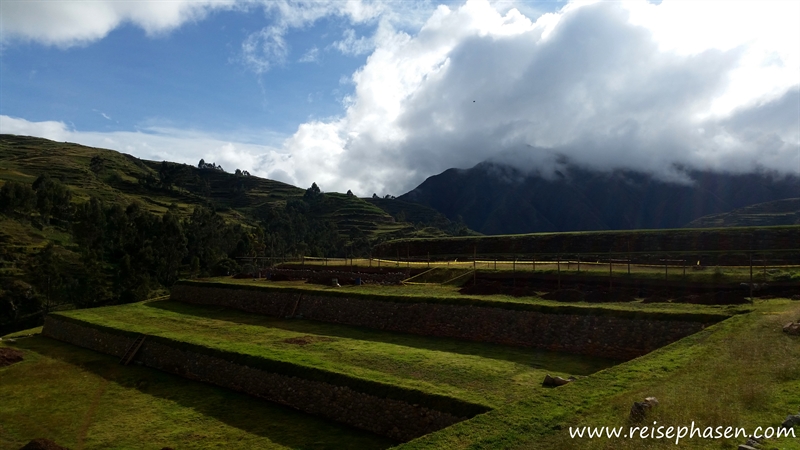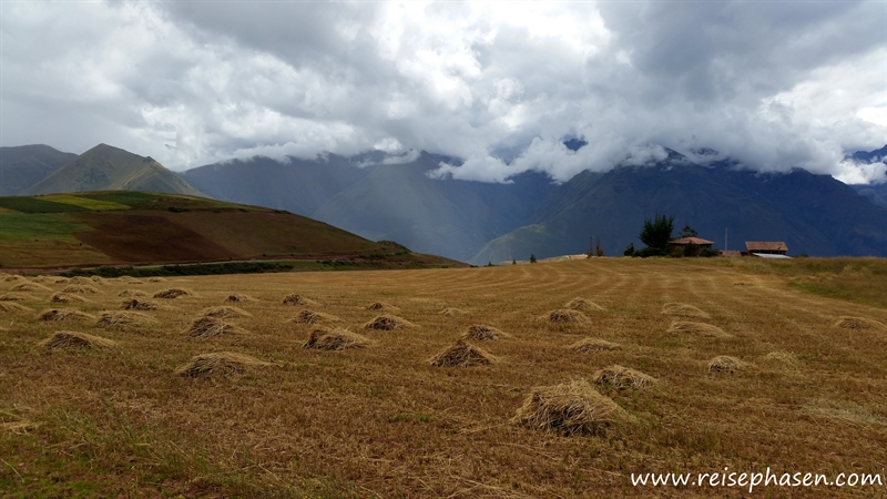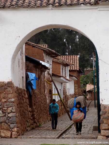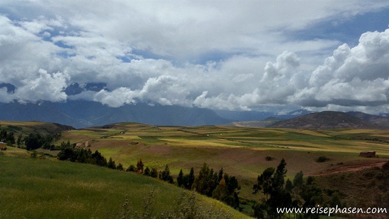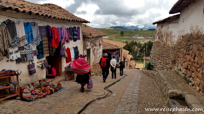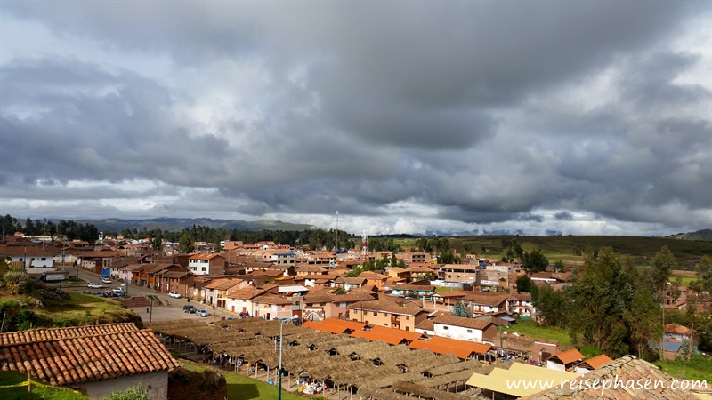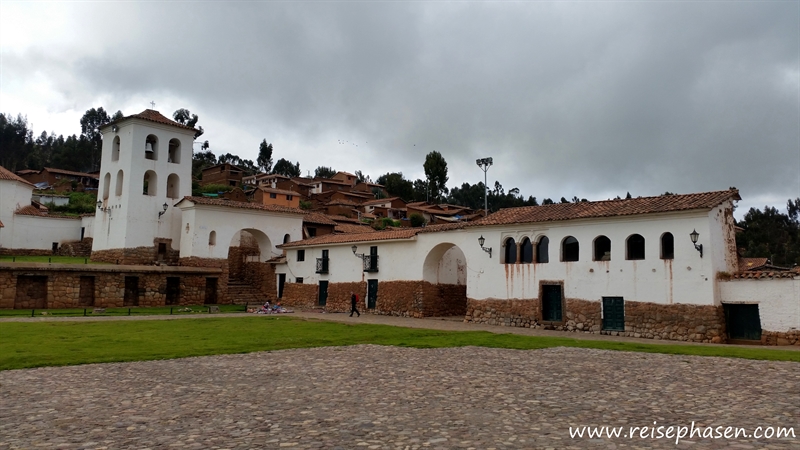 Am nächsten Morgen klingelte uns der Wecker gegen 6 Uhr aus den Federn. Heute stand eine Tagesfahrt durch das Heilige Tal der Inka an. Das Heilige Tal befindet sich nördlich von Cusco. Herrliche Landschaften aus weitläufigen Feldern, Andendörfern, schneebedeckten Bergen prägen das Tal und ebenso seine farbenprächtigen Märkte. Als wir um 7 Uhr von einem netten Fahrer abgeholt wurden ging es direkt zu unserem ersten Ziel, den Ruinen von Chinchero. Der Ort Chinchero liegt auf 3760 m und ist umgeben von weiten Feldern. Schon immer war er ein wichtiger Ort, denn hier hatte der Inka-Herrscher seine Sommerresidenz.