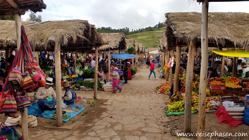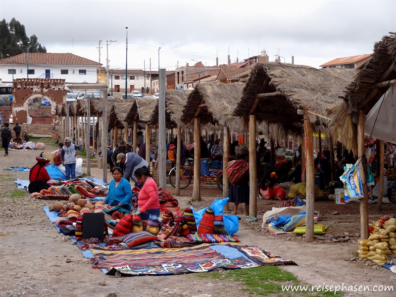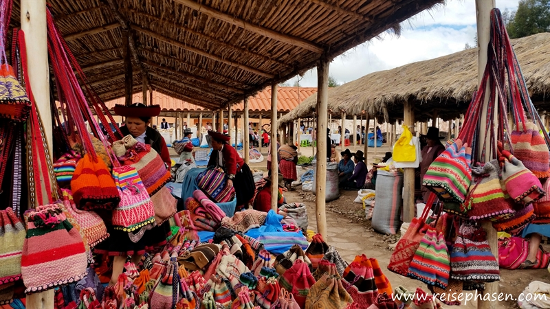 Danach sind wir noch über den Markt von Pisac gelaufen. Allerdings waren wir spät dran und einige Stände wurden schon geschlossen. Es war ein großer Markt mit Souvenirs, Kunsthandwerk, Silberschmuck, Alpakapullover, Tücher, Decken….