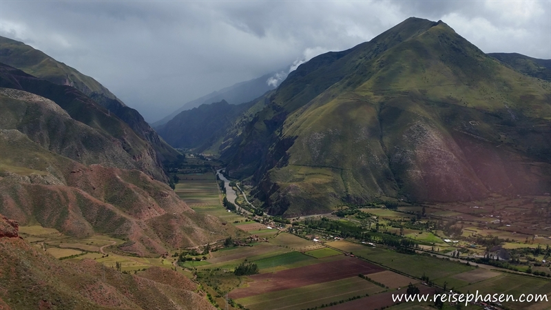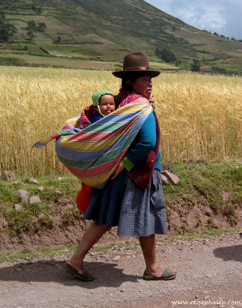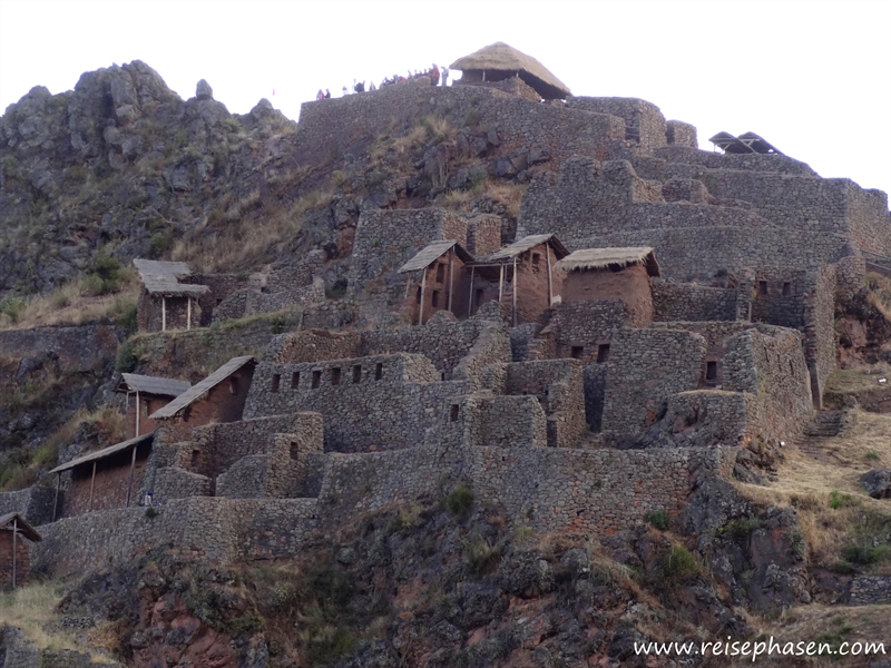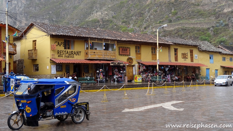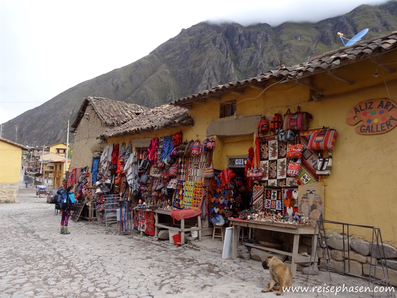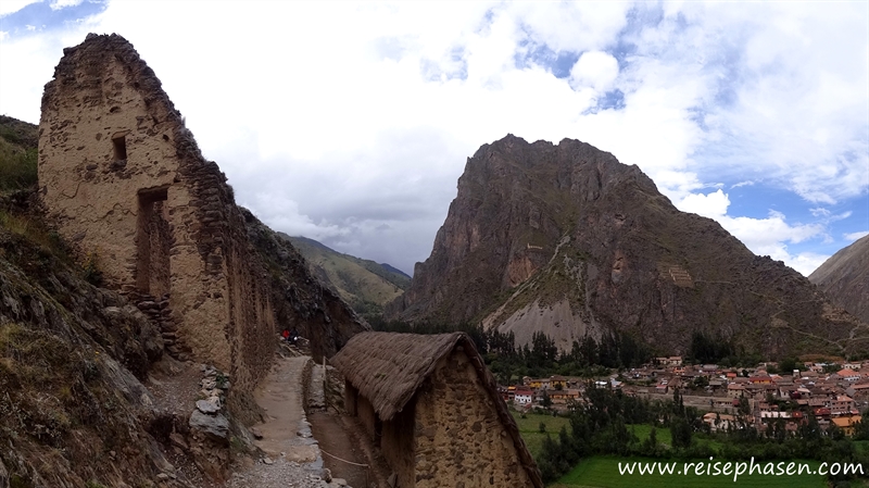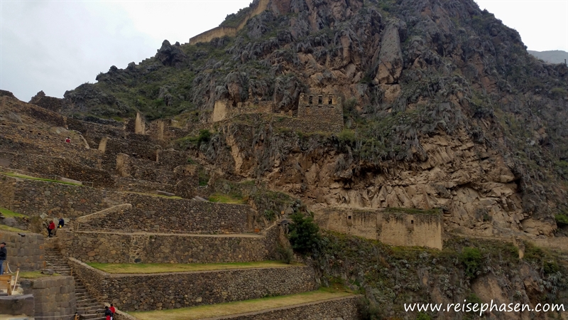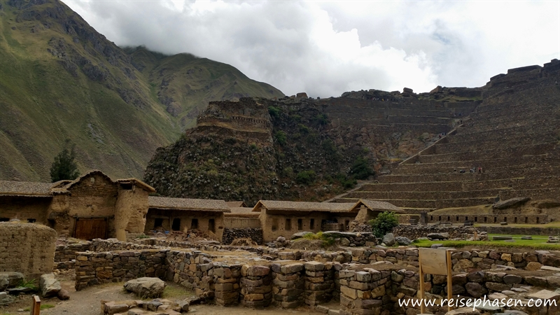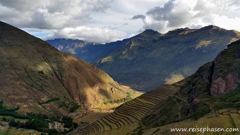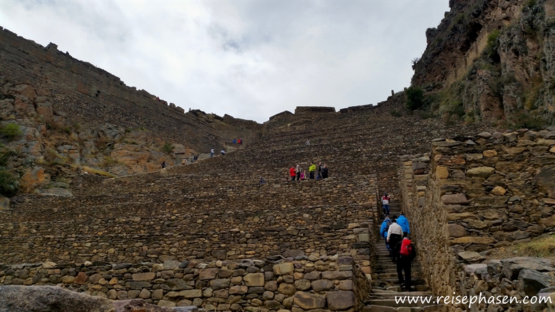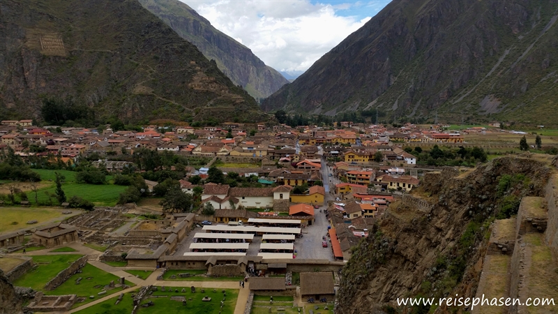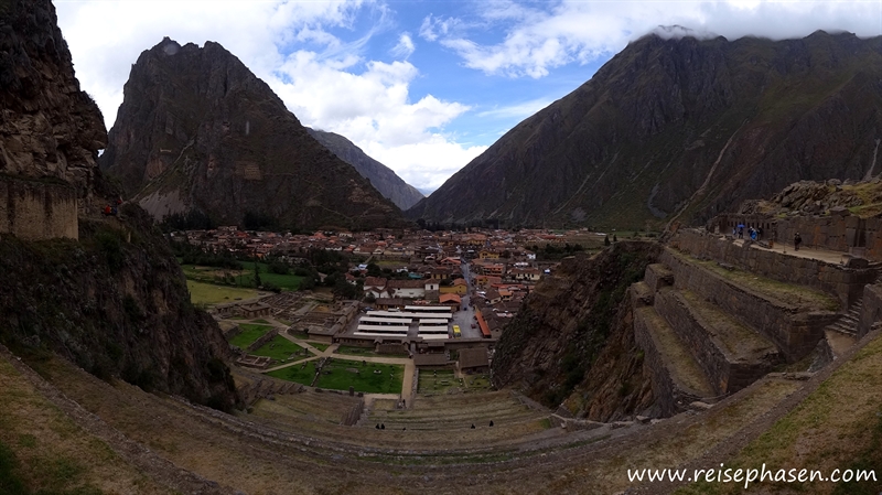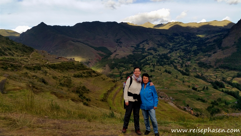 Weiter ging unsere Fahrt zum vierten Ziel, der Inka-Ruine in Ollantaytambo! Der Ort selbst liegt in einem Tal auf 2800 m und wird von zwei Bergketten umgeben. Ollantaytambo ist ein gemütlicher, gut erhaltener Ort mit einem schönen Hauptplatz, ruhigen Nebenstraßen, zahlreichen kleinen Hostels, Pensionen, kleinen Cafes, Restaurants und Läden, die Kunsthandwerk und Souvenirs verkaufen. Absolutes Highlight sind aber natürlich die sehr gut erhaltenen Inka-Ruinen, welche an den Hängen der Berge errichtet wurden. Auf ging es nach oben!!! Der Aufstieg über eine steile Treppe war ein wenig mühsam, hat sich aber total gelohnt. Oben wurden wir mit einem fantastischen Ausblick über das gesamte Tal belohnt. Wir waren begeistert von der Bauweise und konnten uns nicht erklären, wie die Menschen es damals bewerkstelligten, auf solch hohen Bergen Mauern mit derart riesigen Steinen zu erbauen. Nach dem Abstieg bummelten wir noch durch den kleinen Ort und fuhren anschließend zufrieden zum Mittagessen nach Urubamba.
