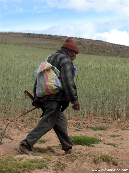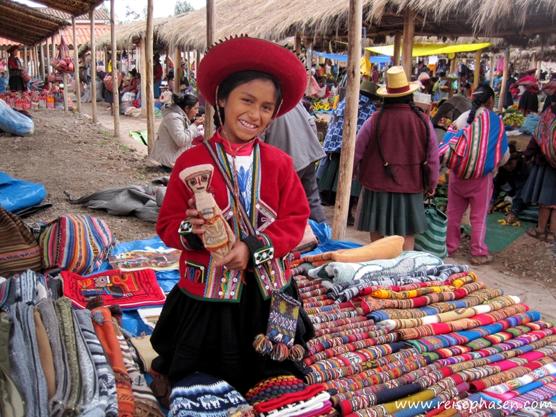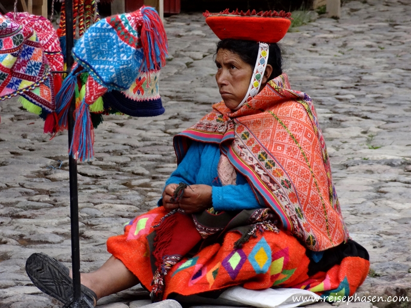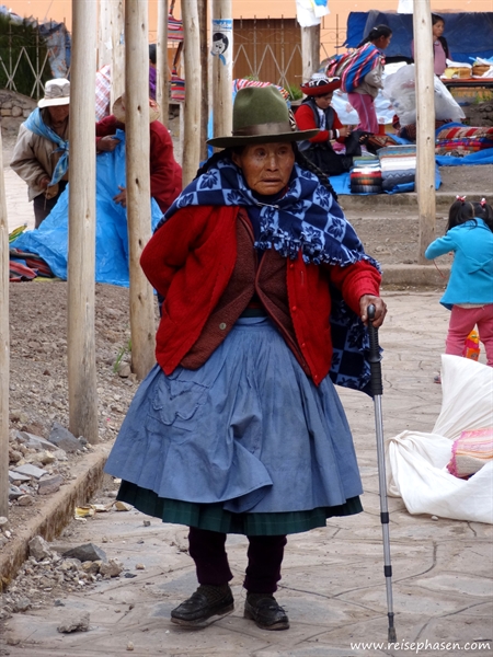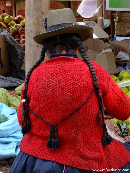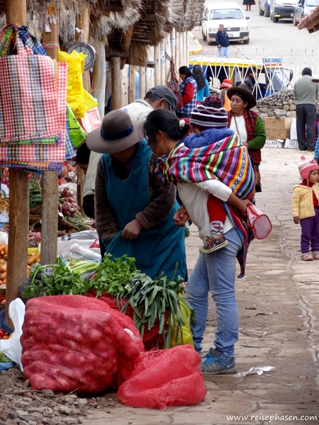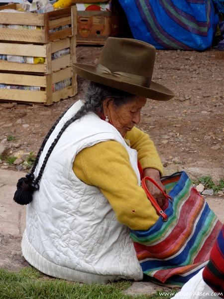 Von der Sommerresidenz, die wir besichtigten, war nicht mehr viel übrig geblieben, bis auf die Grundmauern und die dazugehörigen Terrassenanlagen. Auf dem Gelände befanden sich noch eine Kirche und ein Museum. Wir liefen von den Ruinen aus bergab in das angrenzende Dorf, geradewegs auf einen wunderschönen Markt. Textilien, wie Kleidung aus Ziegenfell oder Alpaka Wolle, Decken, Mützen, sowie Kunsthandwerk und Lederwaren waren auf dem Markt genauso zu haben wie Obst, Gemüse, Süßkartoffeln…. Die einheimischen Frauen waren farbenfroh gekleidet und hübsch anzusehen mit ihren Zöpfen und großen Hüten.