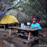 Nach einiger Zeit kamen die Österreicher. Sie waren durchnässt und den ganzen Weg im zweiten Tal hoch gelaufen, hatten aber keinerlei Sicht gehabt, da sie sich in den Wolken befanden. Ok, wir haben für uns die richtige Entscheidung getroffen nicht die Mitte des W’s zu laufen. Sie stellten ihr Zelt ebenfalls hier auf. Wir aßen zusammen und danach ging jeder in sein Zelt zum Schlafen. Wasser zum Trinken und Kochen haben wir uns immer in den Seen und Flüssen aufgefüllt.